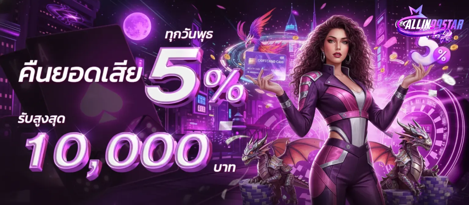 สำหรับใครที่ชื่นชอบบรรยากาศคาสิโน ALLINN99STAR ก็มีเกมคาสิโนสดให้เลือกเล่นมากมาย ทั้งบาคาร่า รูเล็ต ไพ่เสือมังกร และสล็อตออนไลน์ที่มีธีมสนุกๆ ให้เลือกเล่นกว่าพันเกม การันตีด้วยระบบความปลอดภัยมาตรฐานสากล ทำให้สมาชิกวางใจได้ว่าข้อมูลและเงินในบัญชีจะปลอดภัย